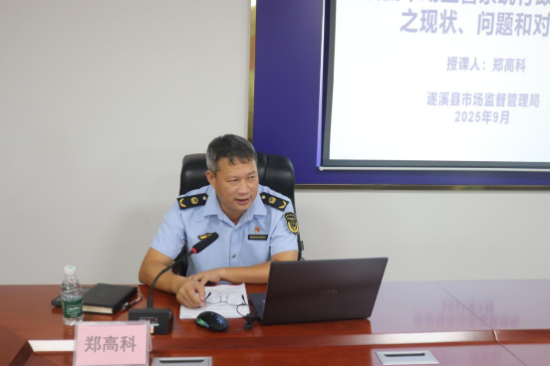 隨后,鄭高科局長以《遂溪縣市場監管系統行政執法工作之現狀、問題和對策》為題,為學員們講授了生動深刻的“第一課”。他立足數十年執法工作實踐,跳出理論框架,將課堂焦點牢牢鎖定在“行政執法現存問題”這一核心,用案例破題、以圖文輔助,一一拆解問題,既讓學員看到了當前行政執法工作中需要改進的地方,也為后續系列培訓錨定了“靶向前進”的方向,做到了“開班即明靶、開課即聚焦”,為本次培訓打下了堅實基礎。