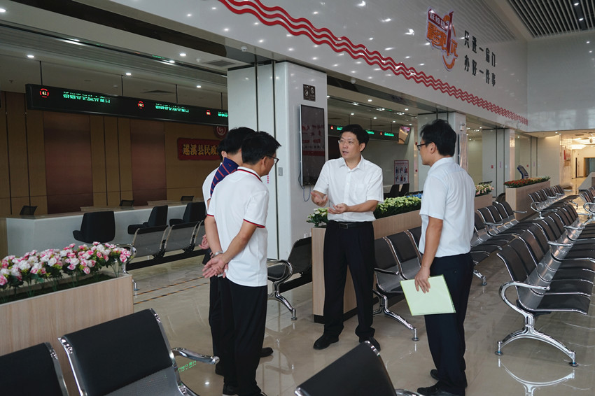 9月3日上午,縣委副書記、縣長陳政帶隊到縣新政務服務大廳調(diào)研考察。縣委常委、紀委書記、監(jiān)委主任阮小遠,以及縣政府辦、縣行政服務中心等單位領導參加了活動。