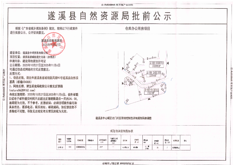 遂溪縣中鴻貿易有限公司倉庫辦公用房項目建設用地規劃許可證批前公示