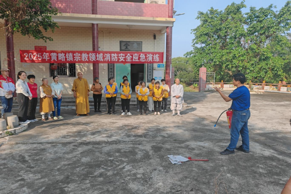 為深刻吸取香港大埔宏福苑特大火災事故教訓,筑牢宗教場所消防安全防線,提升應急處置能力,12 月 5 日,黃略鎮黨委委員林月錦率黨建和組織人事辦、應急辦、專職消防隊,赴轄區玉泉寺開展消防安全培訓暨應急疏散演練,轄區各宗教場所負責人及玉泉寺相關人員共 30 余人參訓。
