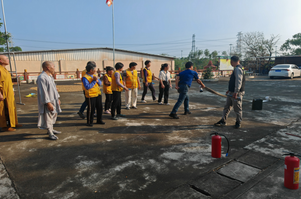 此次演練以 “防范化解火災風險,提升應急處置能力” 為目標,設理論培訓與實操演練兩大環節。林月錦強調,宏福苑火災的傷亡損失令人痛心,其暴露的安全漏洞為宗教場所敲響警鐘,要求參訓人員樹牢 “安全第一、預防為主” 理念,全面排查隱患。