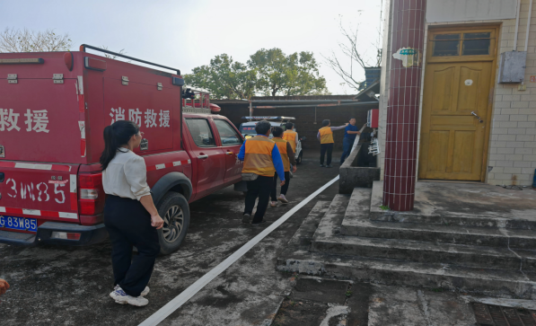 實操環節模擬玉泉寺宿舍起火,按 “初起撲救 — 火情控制 — 應急處置” 推進:先以滅火器撲火,火勢擴大后用消防栓控火,專職消防隊最終滅火;同步開展疏散演練,參訓人員有序撤離至安全區。