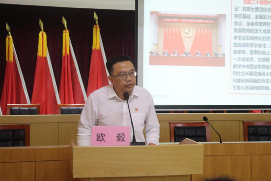 此次宣講會特別邀請湛江市委理論宣講員、市委黨校客座教授歐毅同志作專題輔導報告。歐毅教授作為湛江市理論宣講和政法領域的資深專家,兼具深厚的理論素養與豐富的實踐經驗。宣講過程中,歐教授以宏闊的視野、嚴密的邏輯和生動的語言,對黨的二十屆四中全會精神進行了全面系統、深入透徹的解讀。他深刻闡釋了全會召開的時代背景、核心要義與深遠影響,詳細解析了“十五五”時期我國經濟社會發展的指導思想、目標任務、重大舉措和戰略部署。同時,歐教授還緊密結合習近平總書記視察廣東時發表的重要講話和作出的系列重要指示精神,引導大家深刻體悟習近平總書記對廣東發展的殷切期望和戰略指引,并就如何將中央大政方針與建新鎮發展實際相結合,找準貫徹落實的切入點和著力點,提出了具有建設性的見解。