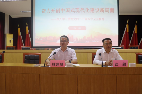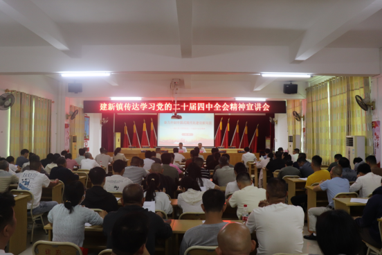 為深刻領會和準確把握黨的二十屆四中全會的重大意義、精神實質和實踐要求,切實把廣大黨員干部群眾的思想和行動統一到黨中央的決策部署上來,2025年11月10日上午9時,建新鎮在鎮四樓會議室召開黨的二十屆四中全會精神專題宣講會。鎮班子成員、鎮全體干部職工、各機關單位負責人、各村黨支部書記及主任參加會議。