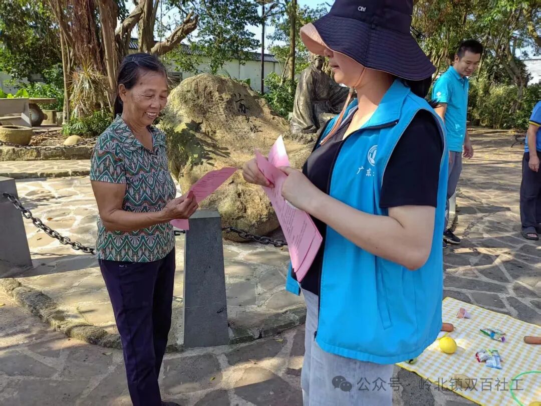 社工創(chuàng)新形式激活參與熱情,現(xiàn)場圍繞政策要點(diǎn)出題,村民答對問題或準(zhǔn)確朗讀指定法規(guī)內(nèi)容,即可獲得5個套圈獎勵。問答間,村民主動思考、積極搶答,在“答題贏福利”的輕松氛圍中加深政策記憶,實(shí)現(xiàn)“學(xué)政策、長知識、得實(shí)惠”的良性互動,有效破解政策宣傳“枯燥化”困境。