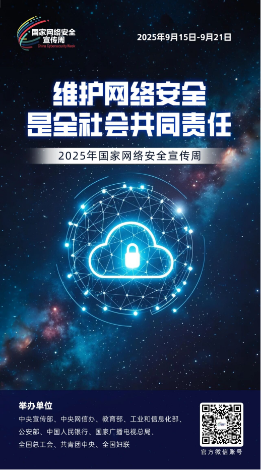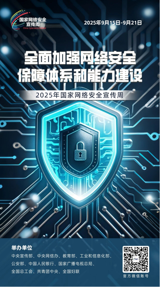 據(jù)介紹,2025年國家網(wǎng)絡(luò)安全宣傳周由中央宣傳部、中央網(wǎng)信辦、教育部、工業(yè)和信息化部、公安部、中國人民銀行、國家廣播電視總局、全國總工會、共青團中央、全國婦聯(lián)等部門于9月15日至21日在全國范圍內(nèi)統(tǒng)一開展,將于9月15日在云南省昆明市舉行開幕式。今年網(wǎng)安周的主題是“網(wǎng)絡(luò)安全為人民,網(wǎng)絡(luò)安全靠人民——以高水平安全守護高質(zhì)量發(fā)展”,將深入學習宣傳貫徹習近平總書記關(guān)于網(wǎng)絡(luò)強國的重要思想,認真落實習近平總書記對網(wǎng)絡(luò)安全工作“四個堅持”的重要指示精神,積極做好《網(wǎng)絡(luò)安全法》《數(shù)據(jù)安全法》《個人信息保護法》《關(guān)鍵信息基礎(chǔ)設(shè)施安全保護條例》《網(wǎng)絡(luò)數(shù)據(jù)安全管理條例》《互聯(lián)網(wǎng)政務(wù)應(yīng)用安全管理規(guī)定》等法律法規(guī)和政策文件宣貫工作,積極展現(xiàn)黨的十八大以來網(wǎng)絡(luò)安全領(lǐng)域的發(fā)展成就和重要成果,向全社會普及網(wǎng)絡(luò)安全知識和技能。