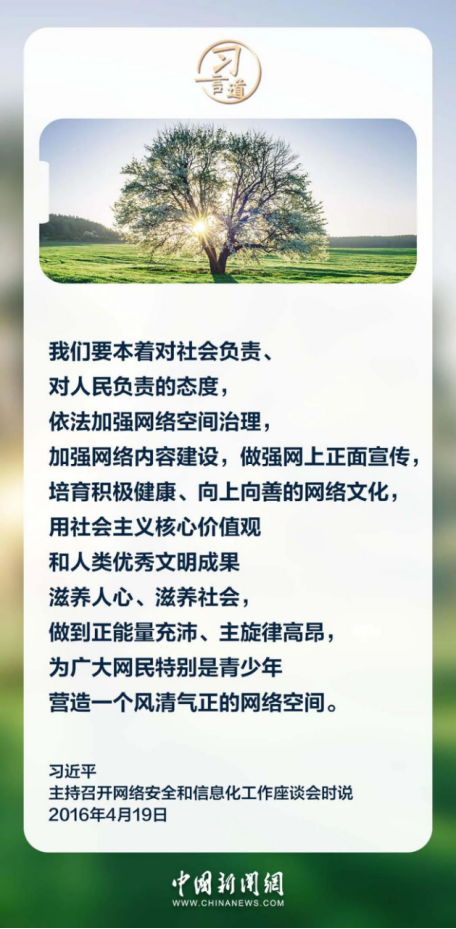 互聯(lián)網(wǎng)是傳播人類優(yōu)秀文化、弘揚(yáng)正能量的重要載體。習(xí)近平總書(shū)記高度重視網(wǎng)絡(luò)文明建設(shè),強(qiáng)調(diào)以時(shí)代新風(fēng)塑造和凈化網(wǎng)絡(luò)空間,共建網(wǎng)上美好精神家園。