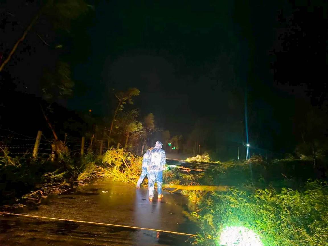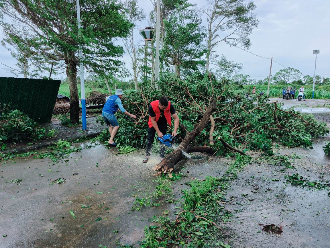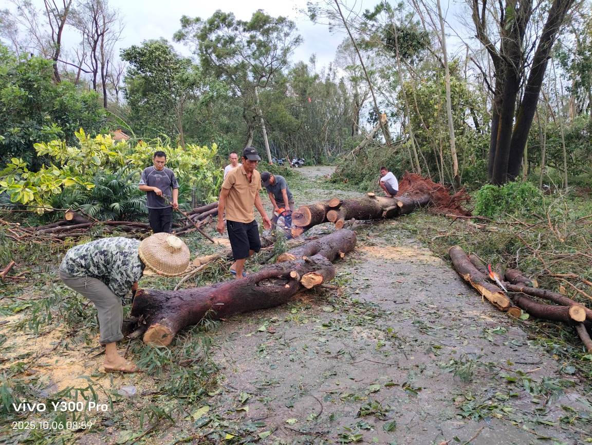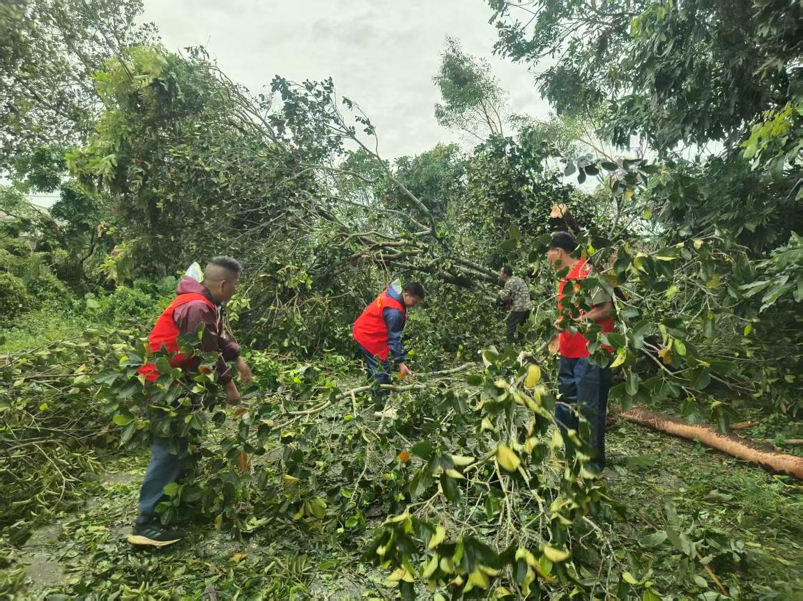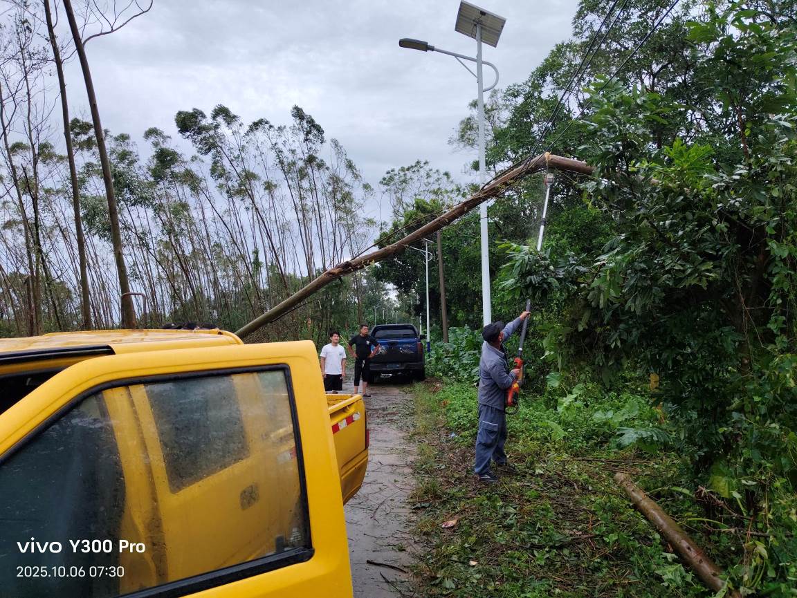 搶通道路,晝夜攻堅護民生。10月5日晚,風雨稍歇,鎮黨政主要領導第一時間冒雨投入搶險救災工作。鎮應急搶險隊頂著狂風暴雨,手持電鋸分工作業,在泥濘與夜色中連續奮戰,清理倒樹180余棵,排除路障9處,及時恢復道路通行;主動協調供電、通信部門開展搶修工作,累計搶修受損線路11公里,成功恢復3個行政村的供電與通訊,讓村民逐步重拾正常生活秩序。
