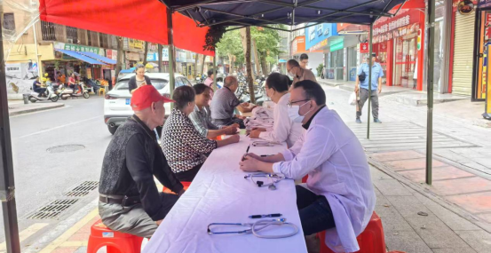 活動現場,農工黨遂溪縣支部主委、廣東醫科大學附屬醫院遂溪醫院重癥醫學科主任王睿聯合普外科、中醫康復科、呼吸科等科室醫生護士坐診,為群眾提供血壓血糖測量、心肺叩聽、把脈問診等醫療服務,細致詢問群眾的身體情況,耐心解答疑惑,提出健康建議,醫務人員專業的服務與敬業的態度獲得了現場居民的連連稱贊。