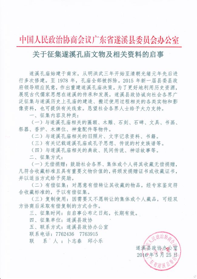 關(guān)于征集孔屆文物及相關(guān)資料的啟事