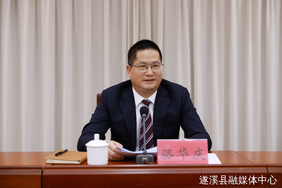 遂溪縣委書記駱華慶傳達學習黨的二十屆四中全會精神并講話,遂溪縣委副書記、縣長張洋主持會議。