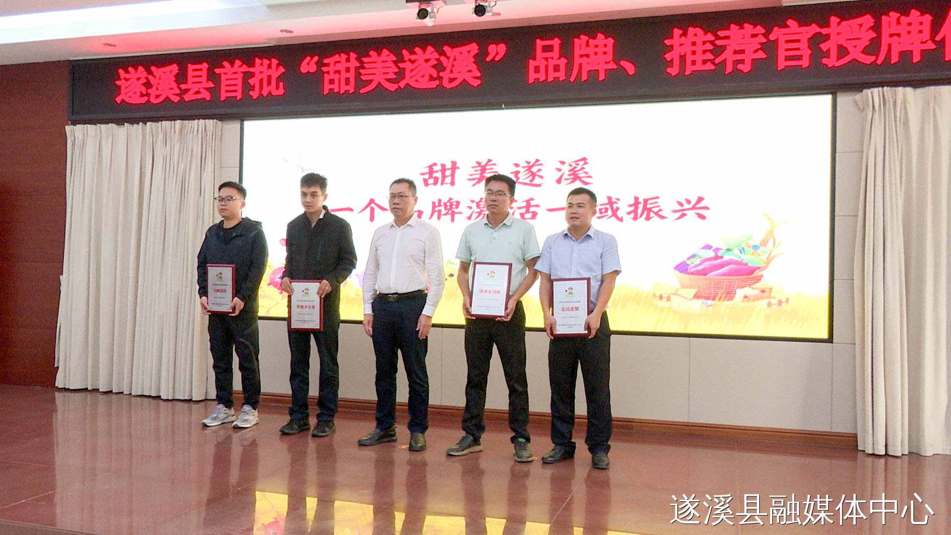 朱銳等領導為首批“甜美遂溪”推薦官頒發證書;為首批“甜美遂溪”區域公用品牌、產品品牌授牌;為產品品牌頒發“甜美遂溪”授權書。全力推動以產業育品牌、以品牌拓市場,將品牌化建設作為推動農業經濟增長的新引擎、新動能,走好“品牌強農”之路,擦亮遂溪農業高質量發展底色,讓“土特產”成為農業高質量發展的“金鑰匙”。