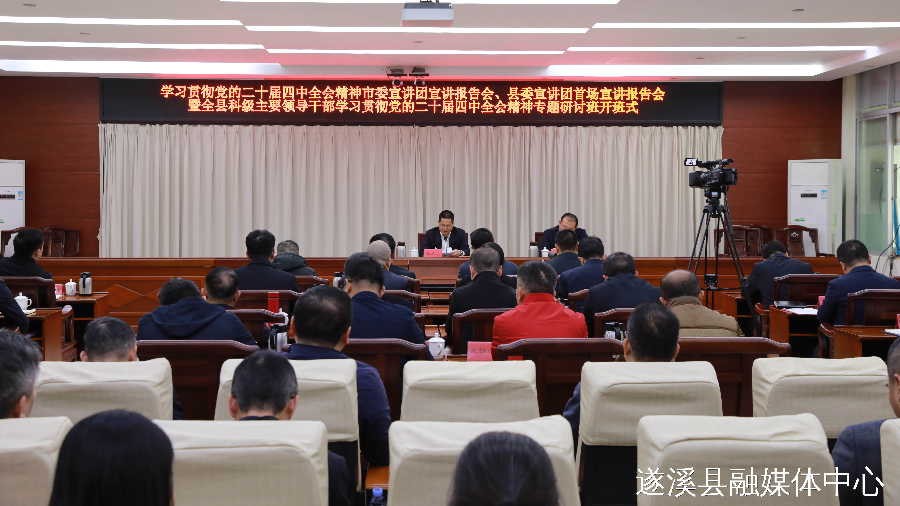 根據市委工作部署和縣委工作安排,11月20 日下午,遂溪縣學習貫徹黨的二十屆四中全會精神市委宣講團宣講報告會、縣委宣講團首場宣講報告會暨全縣科級主要領導干部學習貫徹黨的二十屆四中全會精神專題研討班開班式在縣委第一會議室舉行,遂溪縣委書記、學習貫徹黨的二十屆四中全會精神縣委宣講團團長駱華慶作宣講主題報告暨開班動員講話,遂溪縣委副書記、縣長張洋主持會議。