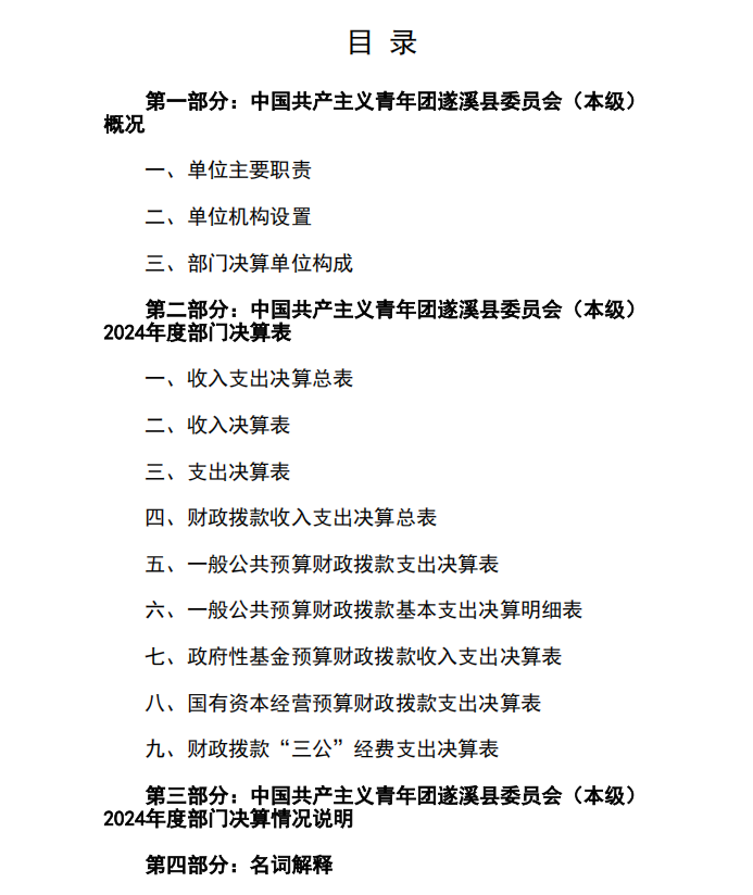 2024年度中國共產主義青年團遂溪縣委員會(本級)部門決算 | | 作者: | 來源:中國共產主義青年團遂溪縣委員會 | 時間:2025-09-16 15:05:25 點擊數:- 2024年度中國共產主義青年團遂溪縣委員會(本級)部門決算.pdf 【打印正文】