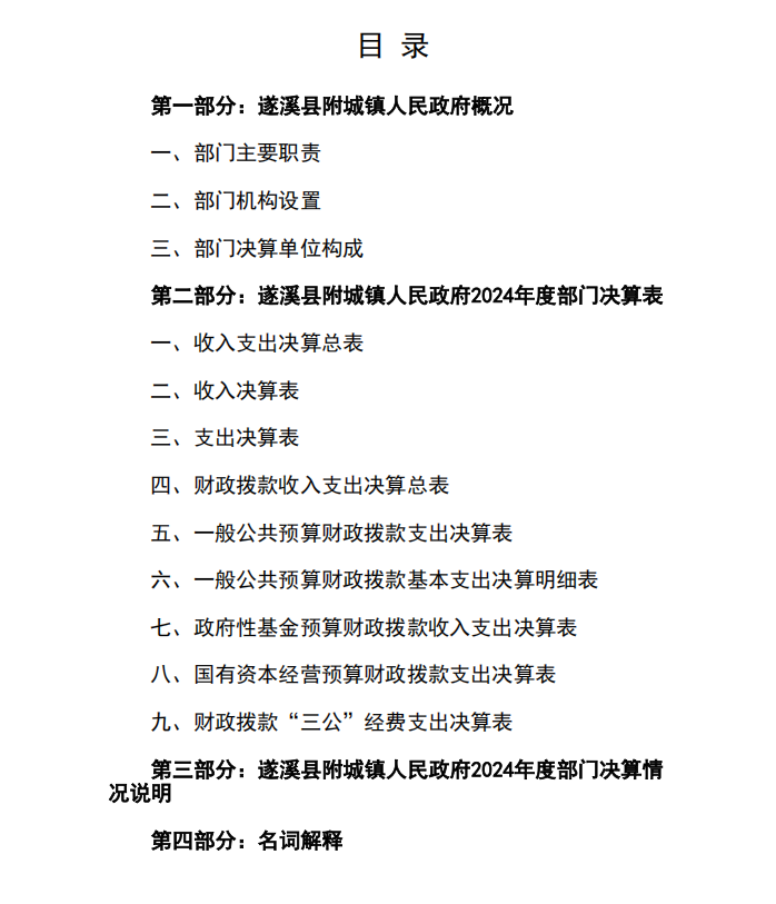 2024年度遂溪縣附城鎮(zhèn)政府部門決算 | | 作者: | 來源:遂溪縣附城鎮(zhèn)政府 | 時(shí)間:2025-09-16 16:28:46 點(diǎn)擊數(shù):- 2024年度遂溪縣附城鎮(zhèn)政府部門決算.pdf 【打印正文】