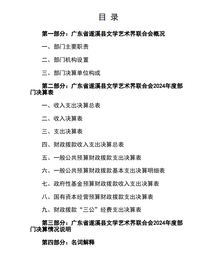 2024年度廣東省遂溪縣文學藝術界聯合會部門決算 | | 作者: | 來源:遂溪縣文學藝術界聯合會 | 時間:2025-09-17 16:22:29 點擊數:- 2024年度廣東省遂溪縣文學藝術界聯合會部門決算.pdf 【打印正文】