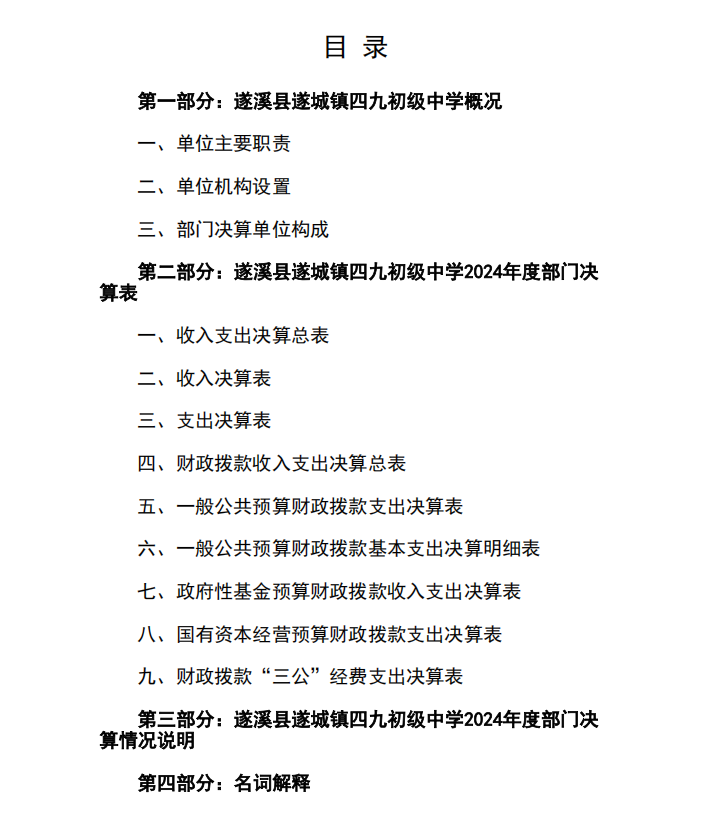 2024年度遂溪縣遂城鎮(zhèn)四九初級中學部門決算 | | 作者: | 來源:遂溪縣教育局 | 時間:2025-09-18 09:42:57 點擊數(shù):- 2024年度遂溪縣遂城鎮(zhèn)四九初級中學部門決算.pdf 【打印正文】