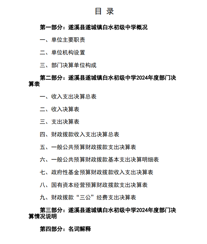 2024年度遂溪縣遂城鎮白水初級中學部門決算 | | 作者: | 來源:遂溪縣教育局 | 時間:2025-09-18 09:47:46 點擊數:- 2024年度遂溪縣遂城鎮白水初級中學部門決.pdf 【打印正文】