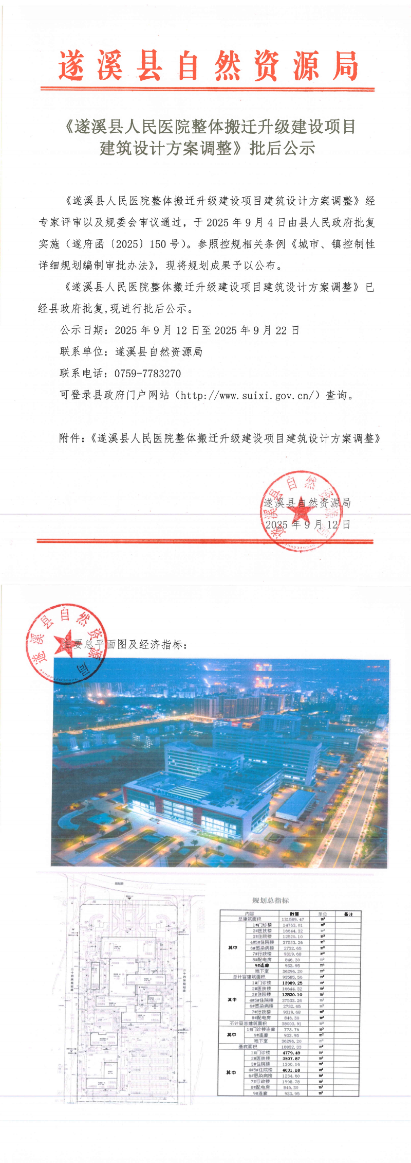 《遂溪縣人民醫院整體搬遷升級建設項目建筑設計方案調整》批后公示