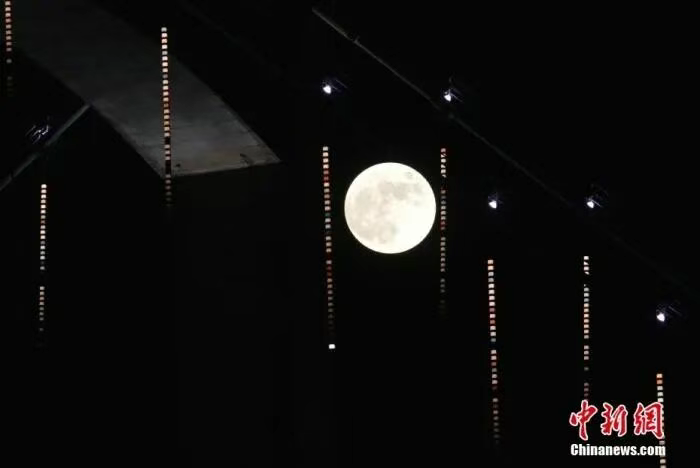 資料圖:中秋節,圓月出現在福建福州上空。中新社記者 呂明 攝