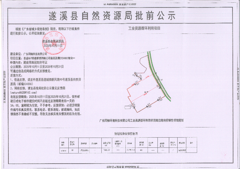廣東同暢環境科技有限公司工業資源循環利用項目建設用地規劃許可證批前公示